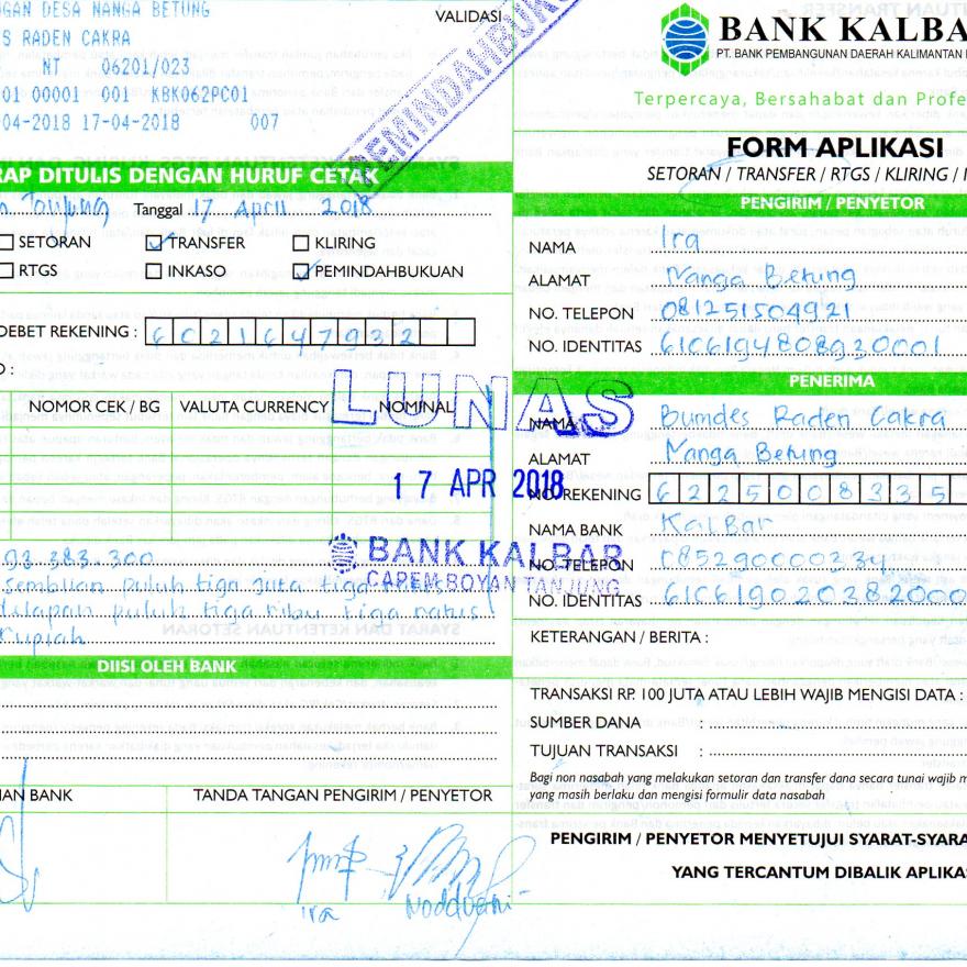 | Kas Bank | 3. 383. 300,- | Buku Tabungan / Bank |