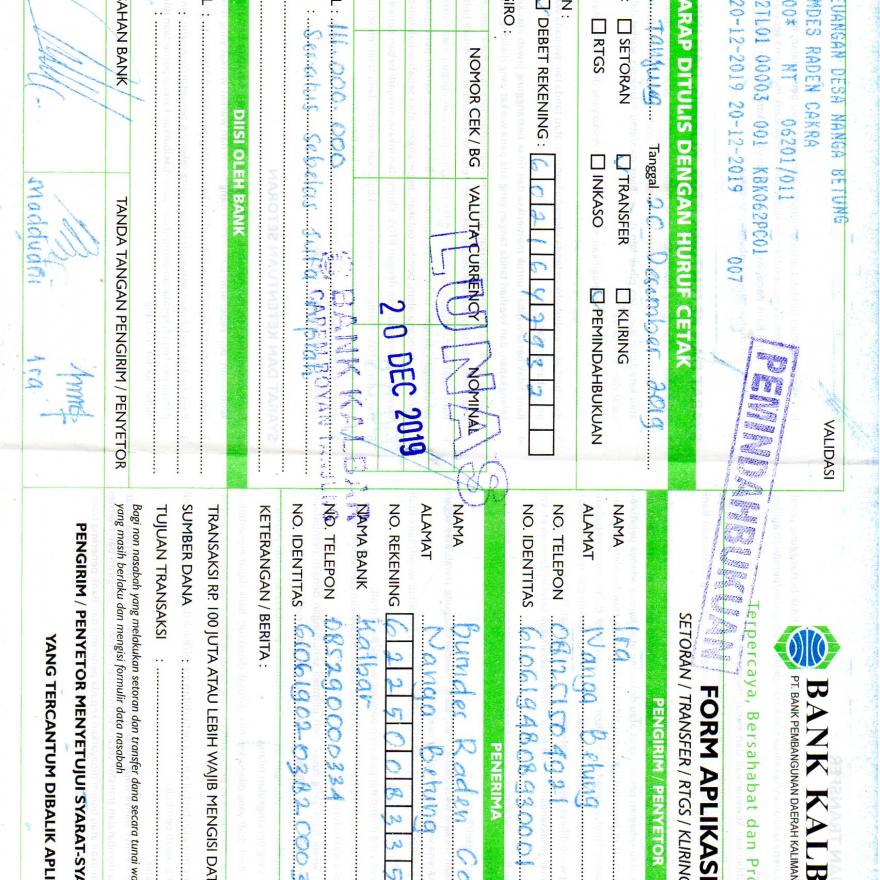 | Penyertaan Modal 2019 | 111. 000. 000,- | Transfer dari Desa Tanggal, 20-12-2019 Belum di gunakan |